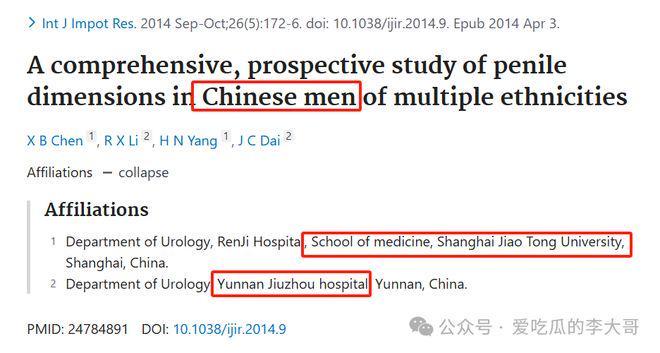 上海交通大学和云南九州医院发表了题为《中国多民族男性阴茎尺寸的综合前瞻性研究》的论文。